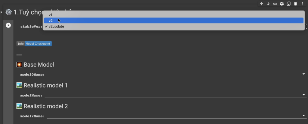 3.2 Các checkpoint được tải trong thư viện trước khi sử dụng, checkpoint mặc định, lora mặc định, textual mặc định sẽ không chiếm dụng drive của tài khoản