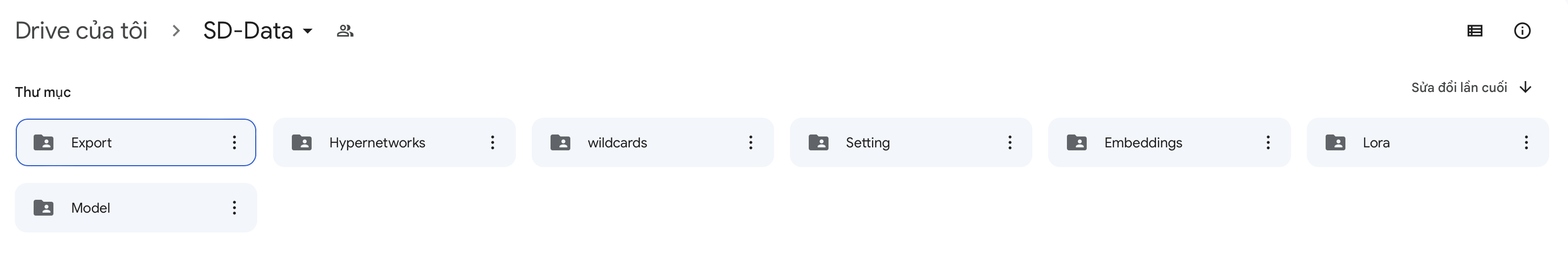 3.1 Các dữ liệu lưu trên drive : Tất cả ảnh được tạo trong quá trình sử dụng , Checkpoint , lora, textual , hypernetwork, wildcard, setting, file style ( Chi tiết xem phần tải và lưu dữ liệu )